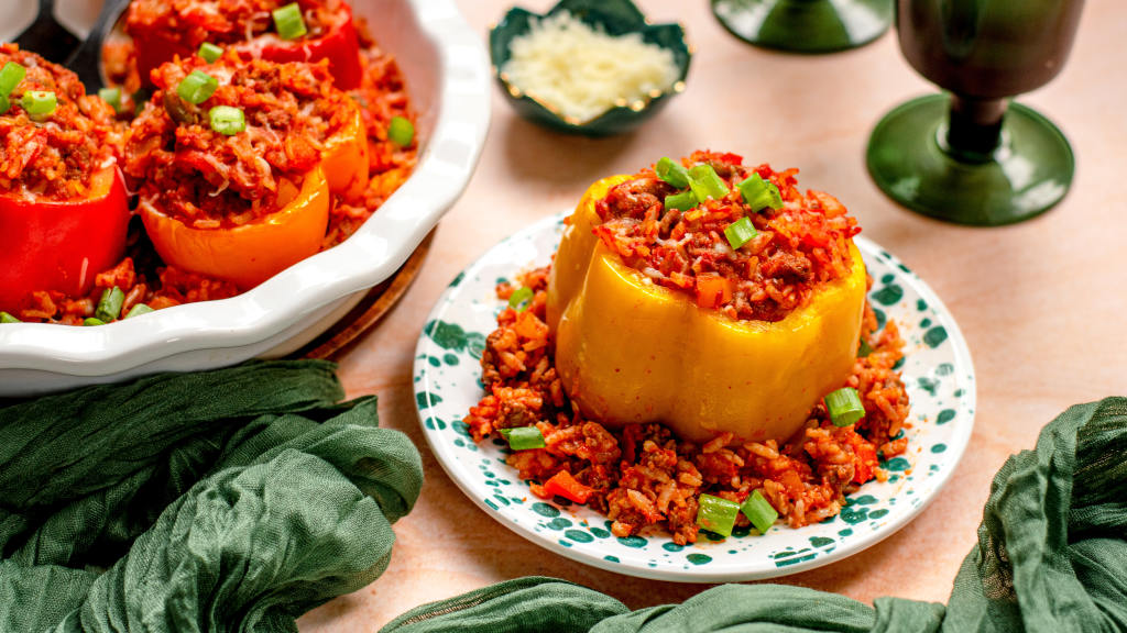 Ground Beef Stuffed Green Bell Peppers With Cheese Recipe Food Com
